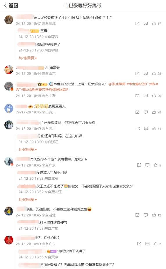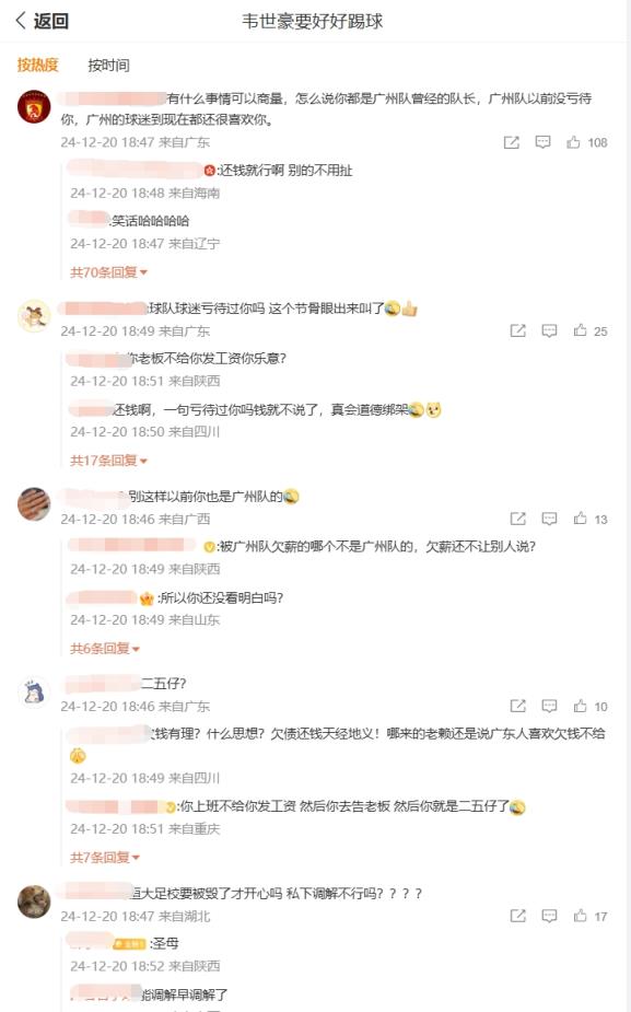 你怎么看❓韦世豪微博评论区两种声音:广州待你不薄vs欠债还钱